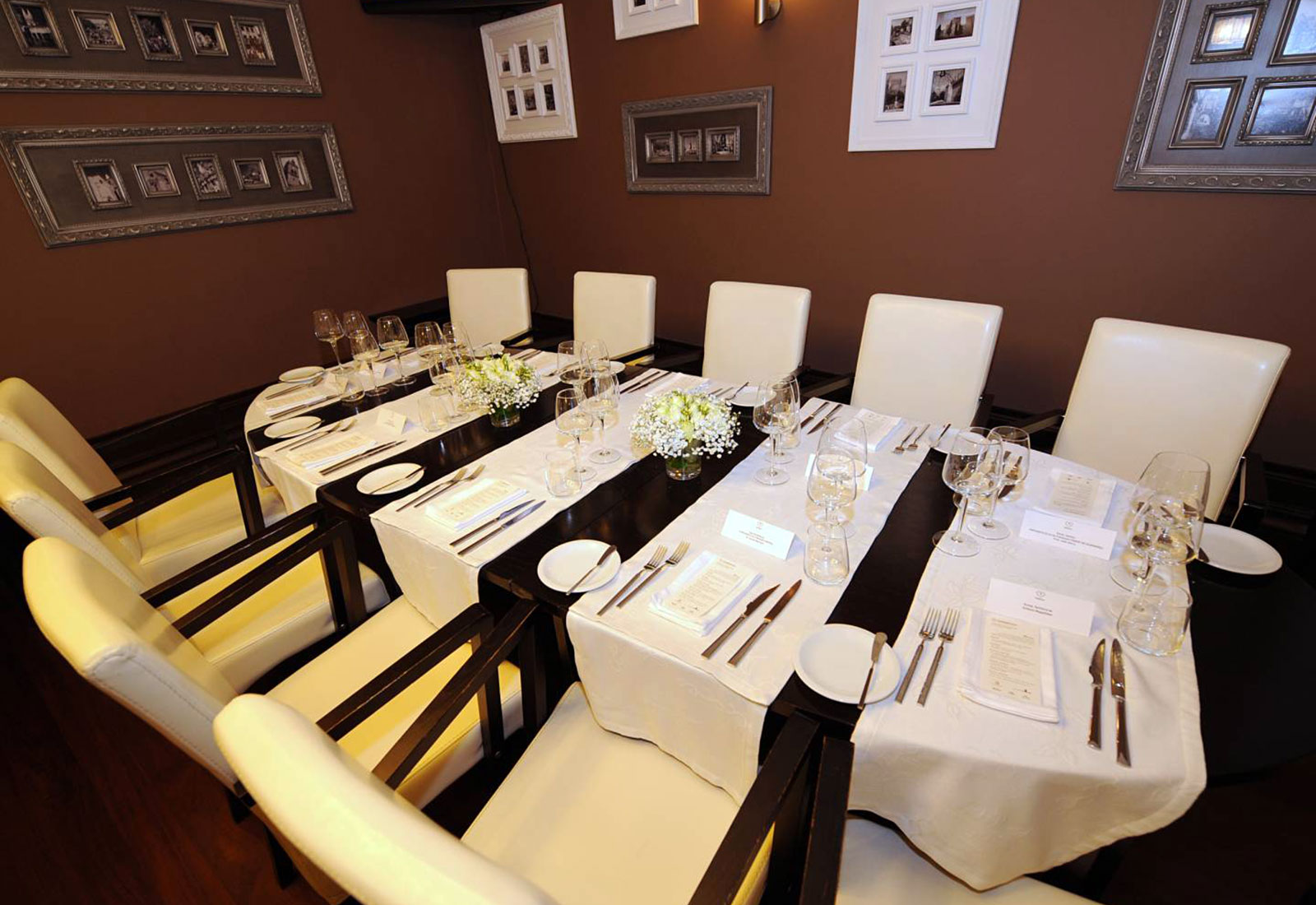 Além da icónica sala de jantar, decorada com um magnífico teto em gesso, o restaurante dispõe de 6 salas com capacidades entre 15 e 60 pessoas para jantares e/ou almoços de grupo.